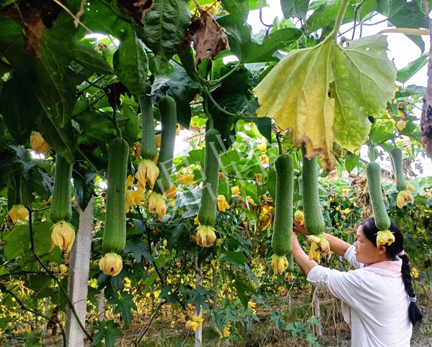 ▲ 8月上旬,菜農在采收“優比1號”絲瓜